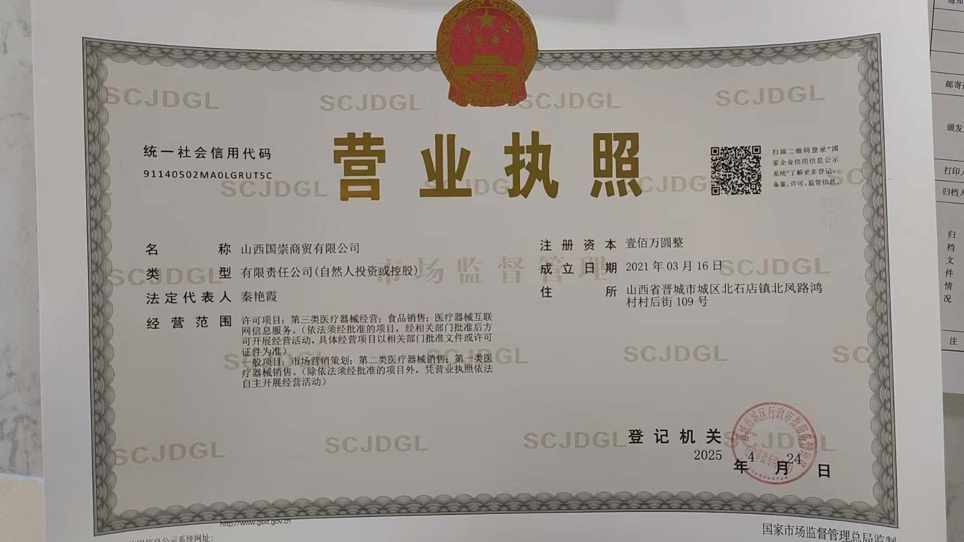 公司始终秉持 “诚信经营、合作共赢” 的理念,严格遵守国家法律法规,主动接受市场监督管理。未来,山西国崇商贸将持续深耕医疗器械与食品流通领域,强化核心竞争力,致力于成为区域行业标杆,为社会创造更大价值。​